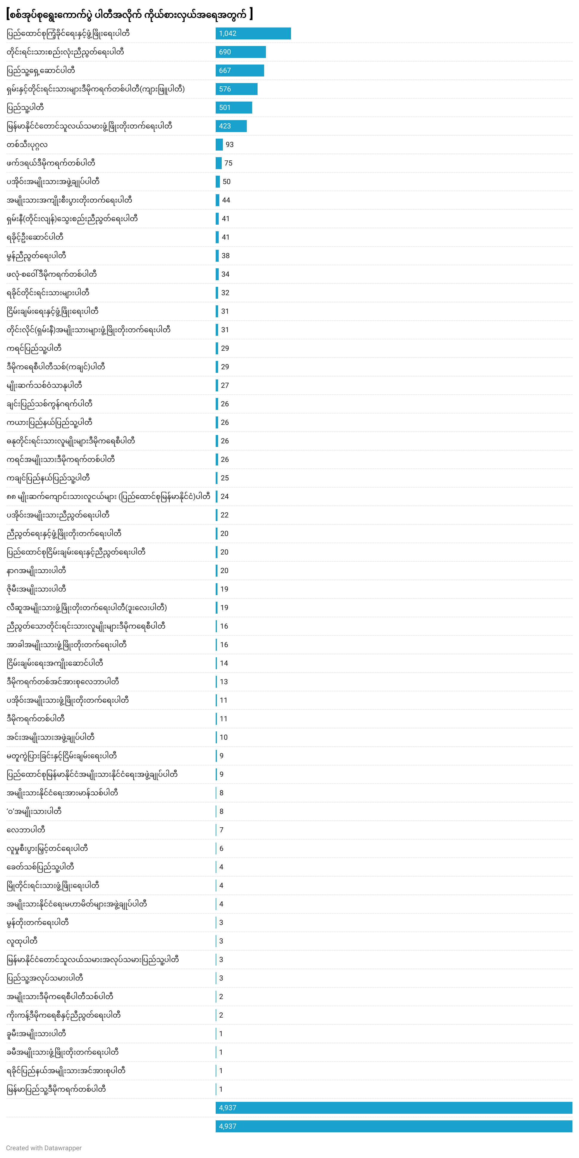 ထို့ကြောင့် စစ်အုပ်စုရွေးကောက်ပွဲတွင် မဲဆန္ဒနယ်အသီးသီးတွင် ဝင်ရောက်ယှဉ်ပြိုင်မည့် ကိုယ်စားလှယ်ဦးရေမှာ ၄,၉၃၇ ဦး ရှိနေသည်။