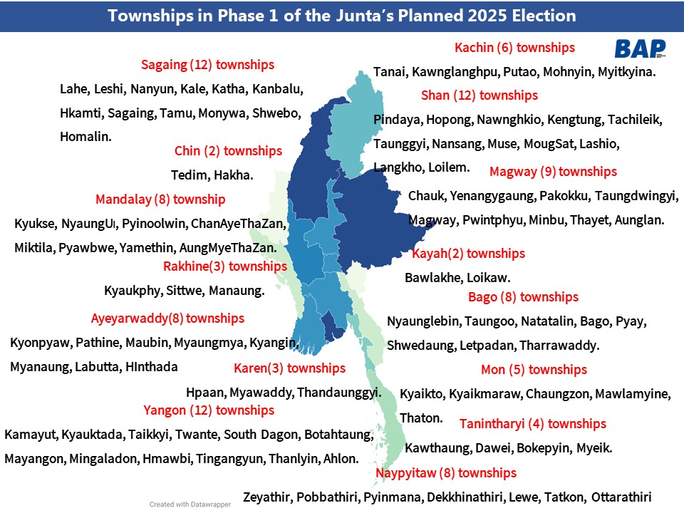 Among the elections held since the adoption of the 2008 Constitution, the junta's planned 2025 election sets a record for the highest number of townships where voting cannot be held.
