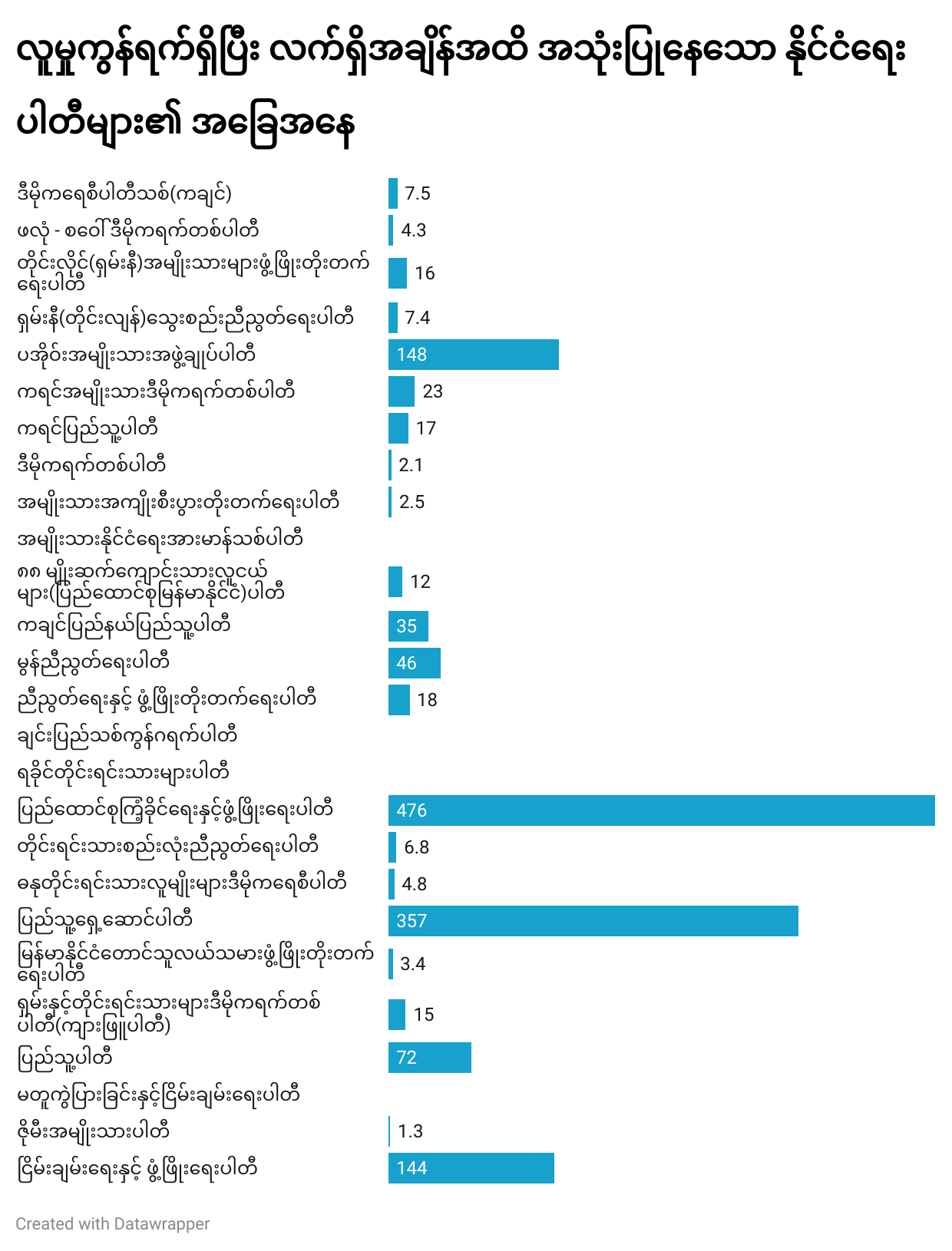 အဲဒီထဲကမှ ပါတီ ၆ ခုက မြန်မာတနိုင်ငံလုံးအတိုင်းအတာနဲ့ ဝင်ပြိုင်ဖို့ရှိနေပါတယ်။