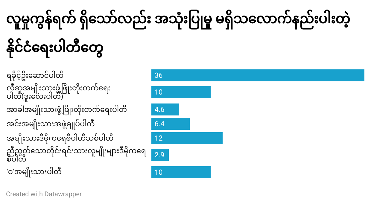 ‘အတုအယောင်’ ရွေးကောက်ပွဲကိုပဲ ဝင်ရောက်ယှဉ်ပြိုင်ဖို့ တက်ကြွနေတဲ့ နိုင်ငံရေးပါတီ တွေကလည်း ဒုနဲ့ဒေးပါ။