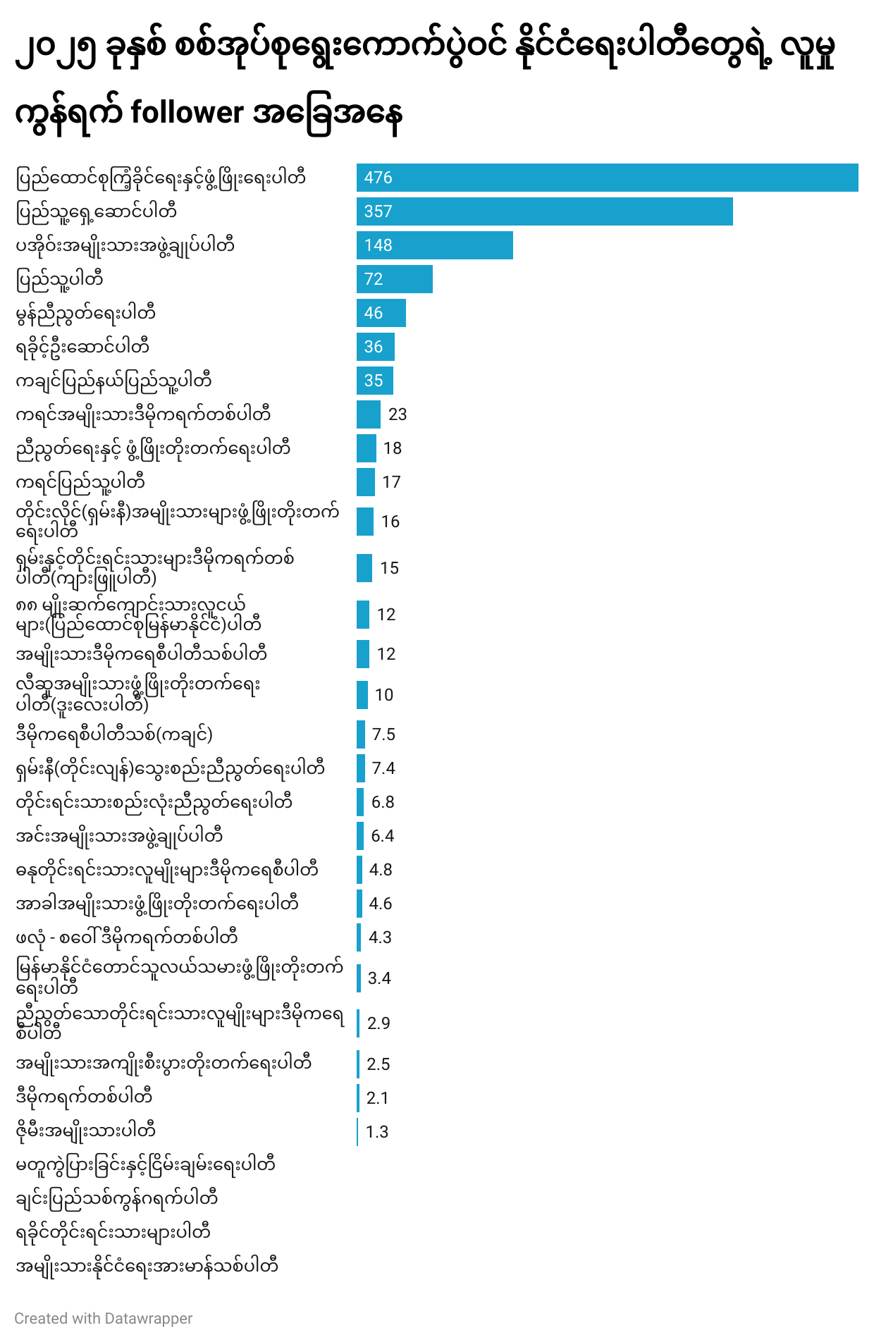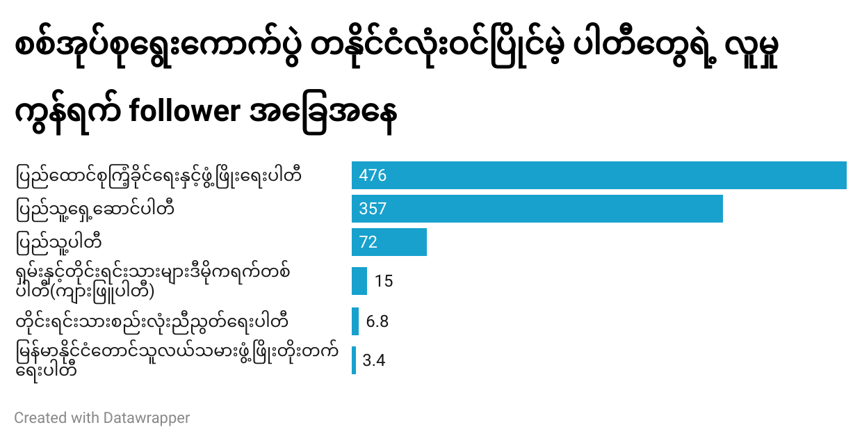 မြန်မာပြည်မှာ ဘယ်ပါတီက လူမှုကွန်ရက်မှာ Follower အများဆုံးလဲ